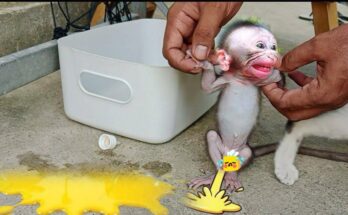 • Rescue poor newborn baby monkey mom pass away after gave a birth