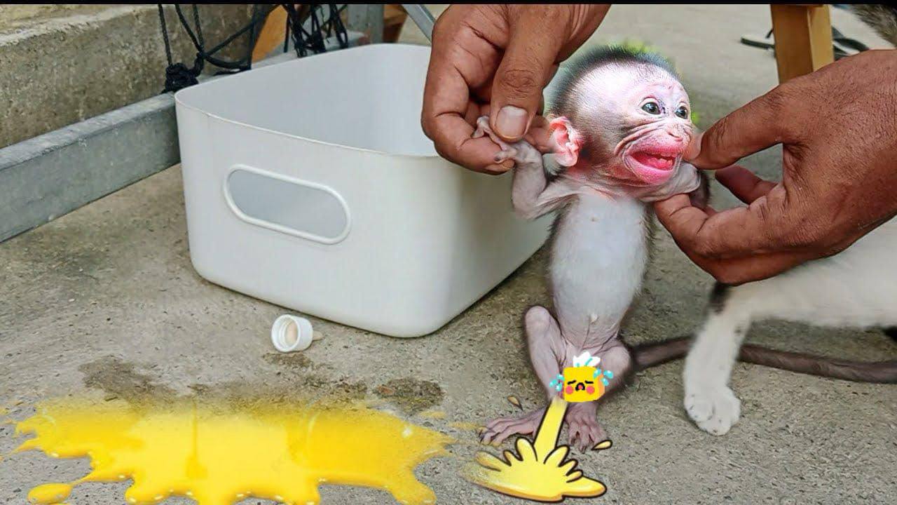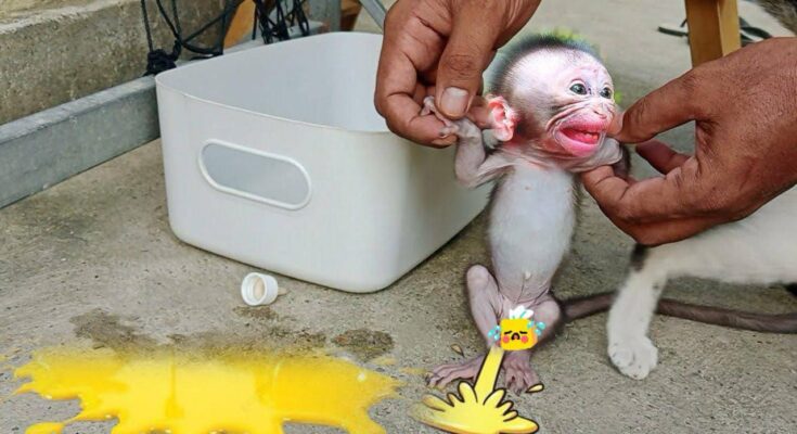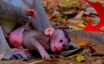 It was a heartbreaking scene deep in the forest—a tiny newborn baby monkey lying beside its lifeless mother. The mother had passed away shortly after giving birth, her body weak and motionless, while her fragile baby clung to her fur, unaware that she would never wake again. The little one’s cries were soft but piercing, filled with confusion and sorrow. It nuzzled its mother’s chest, searching for warmth, milk, and the heartbeat that had always kept it safe—but there was only silence.