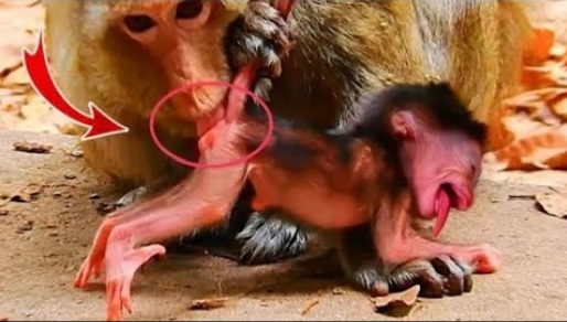 Poor Baby Monkey Cries Loudly Feel Sleep, But Mom Ignoring And Let Sleeps Instead of Giving Milk. October 26, 2025
